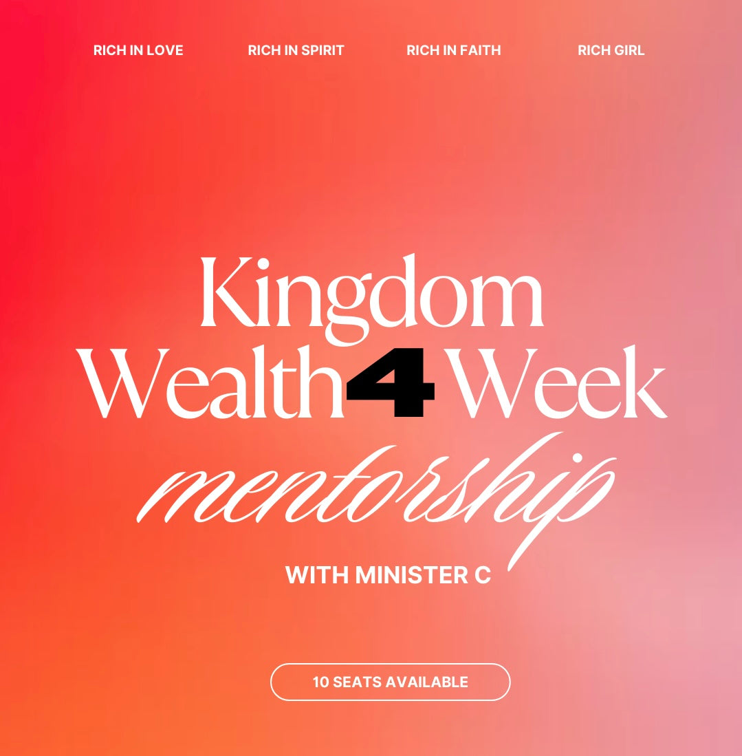 • Interactive Life Class: Learn directly from Minister C, her intercessors, and coaches as they guide you through the Kingdom principles of vision and purpose.